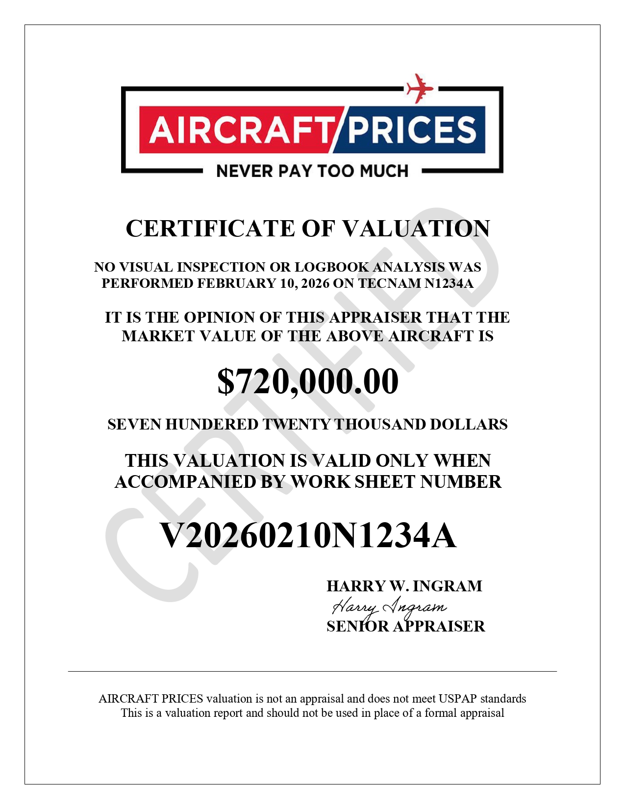 Aircraft Prices, Fast Service, FAA Files Included, Informed Buyers Never Pay Too Much, Available For Certified Piston, Turboprops, Business Jets, and Helicopters Valuation Report $400 Piston $500 Turbine